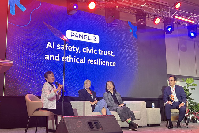 (中央社記者林行健馬尼拉16日專電)菲律賓新聞媒體 Rappler今天舉辦「社會公益峰會」,前數位發展部長、現為無任所大使的唐鳳分享台灣如何在巨量資訊戰攻擊下,仍以民主治理加強社會韌性。
