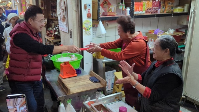 江啟臣今天上午在國民黨籍立委羅廷瑋陪同下,前往東區建國市場。他先在福德祠參拜後,接著進入市場內發送春聯,並與顧客、攤商打招呼、請託,有民眾送上大蒜,高喊「凍蒜」口號。