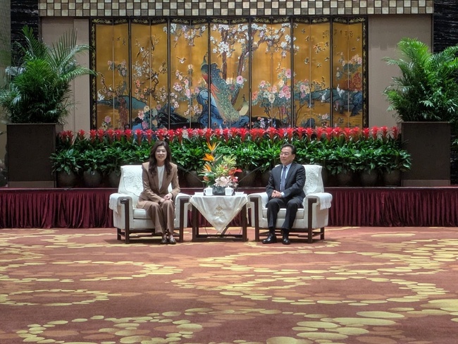 鄭麗文在今天中午與信長星會面時感謝江蘇對台商的照顧,指大陸剛公布「十五五」規畫,在現代化過程及在經濟、科技上,都希望兩岸可以攜手合作,相信一定會對人類做出更大的貢獻。對於未來新的產業樣態,如果台灣的知識界、產業界、文化界也能夠共同參與,相信未來也是空前精彩。