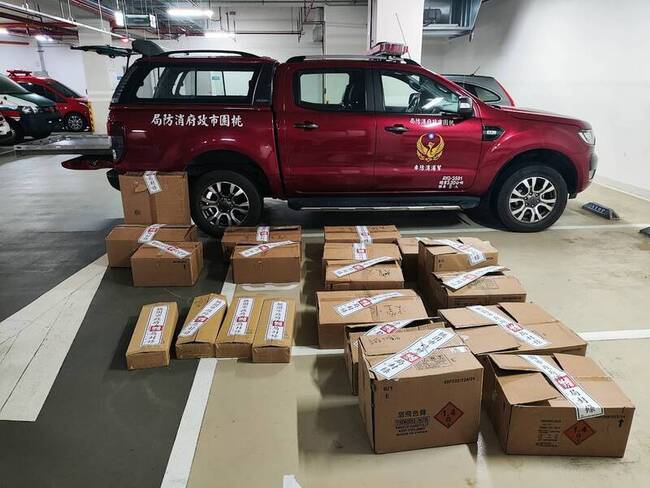 消防局指出,獲報後派員前往稽查,現場查獲50餘種爆竹煙火,總火藥量達41.18公斤,其中包括摔炮類0.93公斤、升空類30.89公斤、火花類9.36公斤等,超過管制量近10倍。