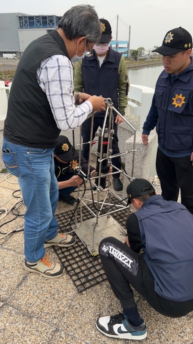 國立中山大學海洋環境及工程學系田姓退休副教授今天主動提供探索聲納供搜索人員使用,這種儀器主要用聲波傳播與反射以探測水下地形,讓潛水人員在下水前能先掌握河床狀況,不至於像盲人摸象,也能讓搜索作業事半功倍。