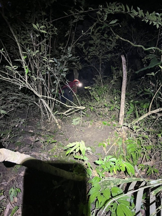 消防局說,獲報後立即派遣人員搶救,現場地勢陡峭且植被茂密增加救援難度,消防人員以繩索器材架設後下降搜索,晚間6時許於報案處發現傷者,傷者趴臥地面、呈現OHCA(到院前心肺功能停止)狀態,消防人員將傷者搬運下山送醫,但搶救不治。