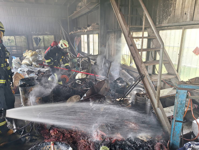 消防人員表示,現場為2層樓鐵皮建築物,2樓後方竄煙,由人員布設水線入室迅速撲滅火勢,未造成蔓延,確切起火原因及財物損失,仍待調查。(編輯:陳仁華)1140302