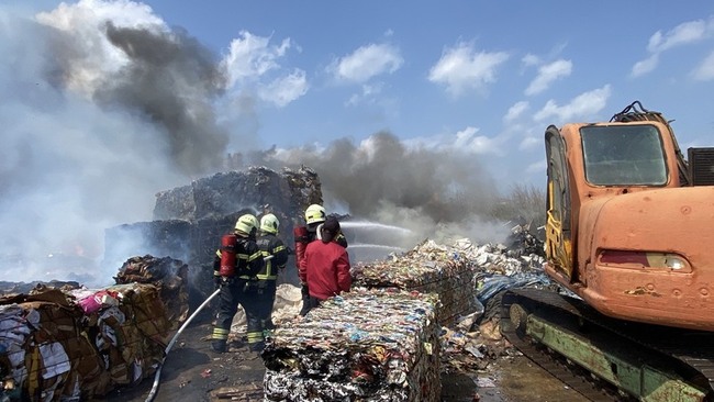 消防局表示,這家資源回收場今年2月曾發生發生回收的廢棄紙類火警,今天再發生,所幸僅燒毀各類廢棄物與機車,並未傳出有人傷亡。(編輯:陳仁華)1140319