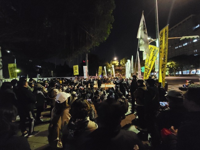 (中央社記者謝幸恩台北21日電)北院昨天首度提訊在押的前台北市長柯文哲,歷經6個小時的訊問,庭訊結束,柯文哲還押看守所。民眾黨立委黃國昌等人與支持者深夜聚集於北院附近,拿著標語手板與旗幟聲援。
