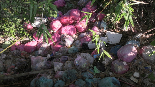 他說,在三峰一路附近的廢棄物,有部分遭推滾丟到竹林內,清潔隊員爬下邊坡撿拾清理,並在垃圾袋中發現出貨單據等資料,相關事證皆交由警方追查。