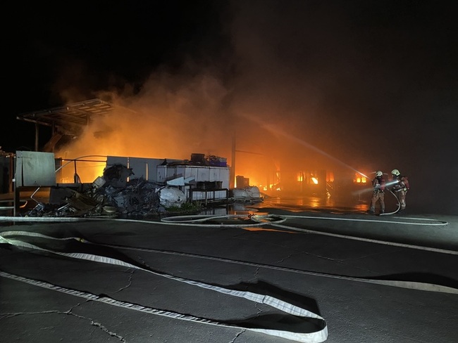 消防局表示,由於現場存放大量可燃物,消防人員趕抵時,建物內已有明火竄出,消防人員立即灌救,並同步通知台電、自來水公司與瓦斯公司到場支援,以確保安全。另在回收場後方有民宅緊鄰,民宅內1名14歲民眾已經疏散,並設置水線進行預防性防護。