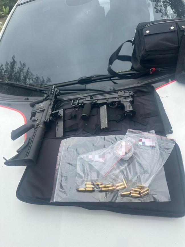 警方經組成專案小組全力緝凶,鎖定42歲王男及65歲張男涉有重嫌,隨即報請橋頭地檢署檢察官指揮,並在中午1時許在大社區拘提王嫌及張嫌到案,車上起獲長槍2把及海洛因、安非他命等毒品。