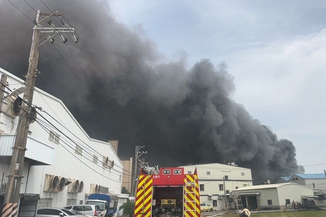 桃園市政府消防局表示,上午9時13分接獲報案,在蘆竹區一處工廠發生火警,消防局立即派出消防人員、消防車及救護車前往搶救,現場為地上1層的鐵皮結構建築物,起火層在第1層,初步了解,現場存放棕櫚油等植物油約100公噸,目前無人受困、受傷,至於財物損失及起火原因有待後續調查。