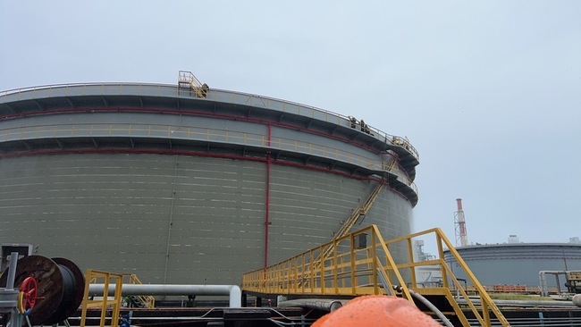 廠方向中央社記者表示,因高雄上午下起雷陣雨,導致儲油槽屋頂遭雷擊劈中起火,幸迅速撲滅火勢;目前火警不影響廠區生產,現場持續警戒中。(編輯:陳仁華)1140511