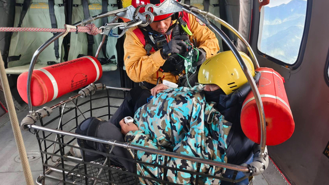 (中央社記者張祈花蓮縣21日電)3人登山隊攀登奇萊東稜路線時,52歲周姓男山友高山症發作,四肢無力、嘔吐頭暈,由同行成員攙扶至大理石營地求援。空勤今天上午派遣黑鷹直升機,成功將周男吊掛下山送醫。