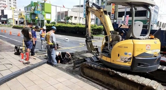 消防局告訴中央社記者,經過10小時開挖後,今天上午9時許尋獲外洩管線,目前正進行更換及補修,但在瓦斯偵測數據歸零前,現場仍需封鎖,店家暫停營業,防範意外發生。(編輯:李錫璋)1140606