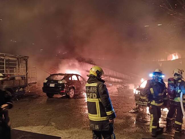 消防人員表示,火警現場為1層樓鐵皮構造建物,火勢一發不可收拾,經布署水線搶救,火勢於晚間9時55分撲滅,燃燒面積約100平方公尺,另波及2輛自小客車及1輛貨車。