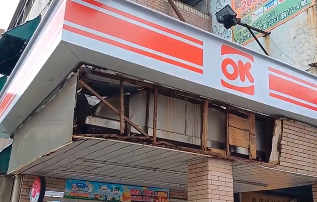 新北市政府警察局淡水分局表示,昨天晚間8時30分許獲報,淡水區中正路上1間超商外面的木板、磁磚掉落,幸無人受傷,警方已拉封鎖線。