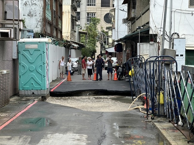 高雄市警察局新興分局表示,自強路派出所中午12時許獲報成功一路361巷有路面道路塌陷,員警獲報後立即協助進行周邊道路管制,後續通知相關主管機關到場勘查。