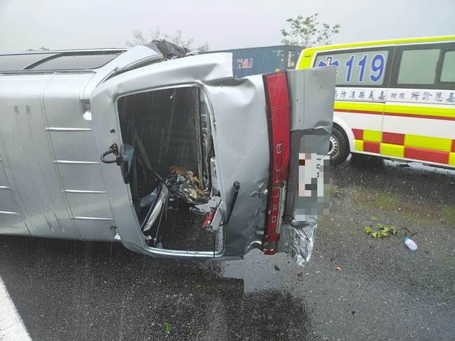 台南市消防局上午9時19分接獲嘉義縣消防局通報,國道3號白河區308.5公里南下路段一輛貨車翻覆,駕駛脫困,立刻出動救援。
