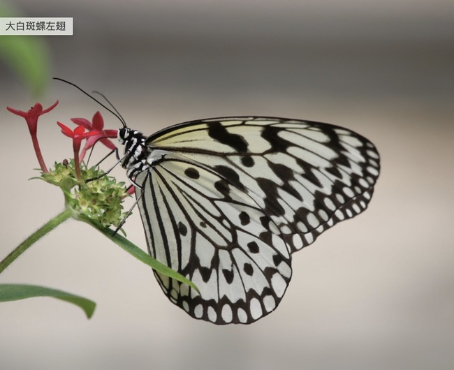 根據動物園官網,枯葉蝶為大型蛺蝶,軀體背側暗褐色,腹側淺褐色,外型如枯葉而得名,成為不易被敵人發現的最佳保護色,喜歡停在地上吸吮發酵水果、尿液或動物體液,受驚時會突然飛起,快速逃到附近樹叢間;大白斑蝶軀體白色,有黑斑點與線紋,為多世代性蝶種,常於樹冠上緩慢飛行,喜訪花。(編輯:李明宗)1140715
