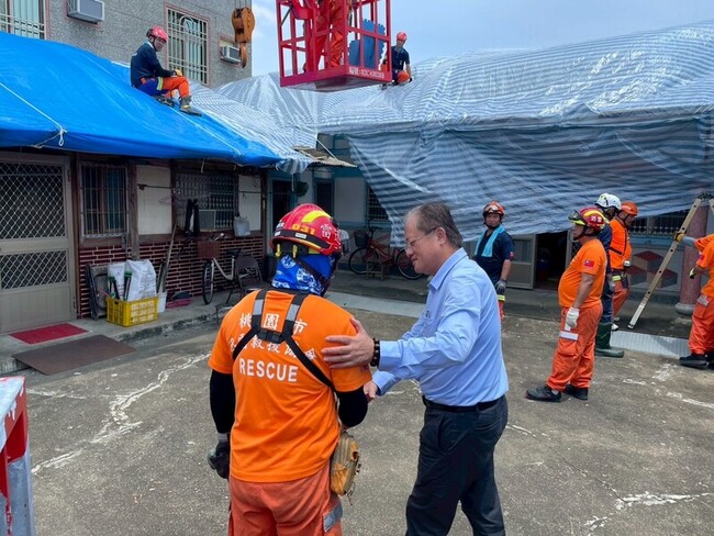 消防署表示,蕭煥章清晨率先抵達台南市消防局,慰勞義勇消防總隊及警消人員,感謝他們面對颱風帶來的嚴峻挑戰,展現極高應變能力,第一時間即投入各項災情搶救與災後復原任務,為地方政府與民間組織強大合作的最佳典範。