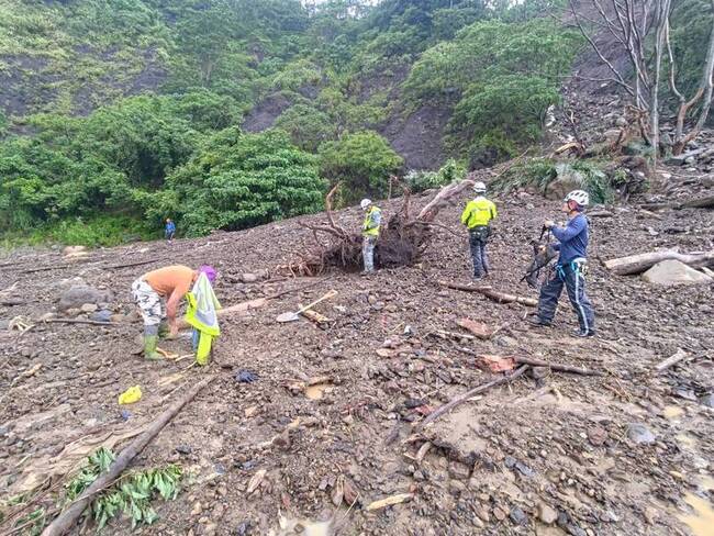 高雄市政府消防局特搜第一分隊副中隊長黃靖堯接受中央社記者電訪表示,今天因雨勢稍緩出動74人持續搜救,上午在下切150公尺處挖掘時,找到墜谷車輛的輪胎跟保險桿,以及一塊較大的遺骸跟數塊散落遺骸,但身分仍待鑑驗辨識。另還有許多散落嬰兒物品。