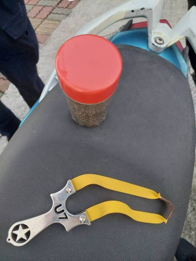 經專案人員調閱周邊監視器,並查訪附近工地,昨天晚間6時多,循線查獲涉案的30歲阮姓移工,並查扣1把強力彈弓及鋼珠等證物。警方初步調查,阮男與社區住戶無結怨,所犯事件非針對社區,且與住戶無關。