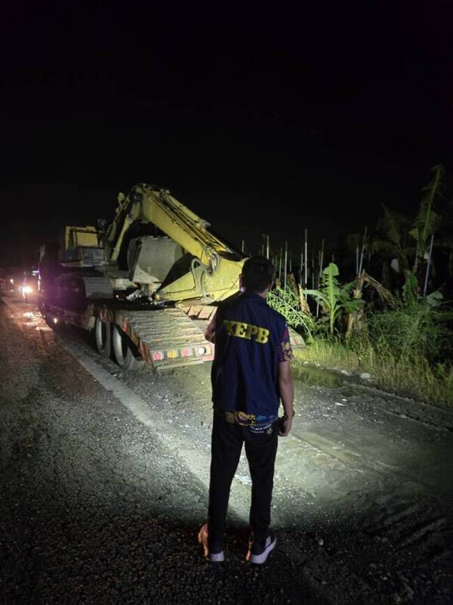 高雄市政府環保局今天發布新聞稿說明,警方昨天晚間7時35分許在成功段土地附近巡查時,發現1輛車因泥沼下陷受困,現場還有2台怪手進入,情形可疑,並發現黃姓怪手司機企圖移動怪手,警方立即留置人車並進行現場戒護。