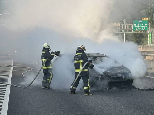 台中市消防局表示,今天下午4時45分獲報,國道4號東向20.1k處台中豐原區路段,發生車輛起火案件,立即派員到場處理。