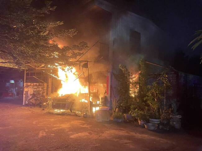 消防人員表示,火警現場為1棟2層樓鐵皮建物,1樓有火煙竄出,經布署水線搶救後,火勢於2時44分撲滅。