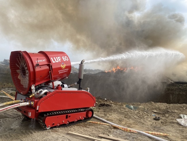 消防人員現場布設水線,並出動2部機器人投入救災,火勢在下午2時45分獲得控制,燃燒面積約500平方公尺,確切起火原因待釐清。