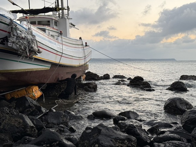 陳姓船長向警消表示,今天結束海上捕捉土魠魚,自望安東吉海域準備返回馬公漁港時,疑因機械故障失去動力,而意外擱淺在青灣南海域礁岩區,所幸人船均無立即危險。