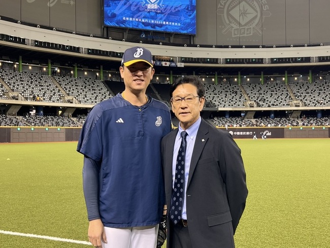 火腿隊來台交流賽,今天在台北大巨蛋與中信兄弟交手,賽前栗山英樹與王建民見面,稱讚王建民是了不起的投手,也謝謝王建民在世界棒球經典賽資格賽(WBCQ)期間對孫易磊的照顧,王建民也拜託栗山英樹,多多照顧台灣球員孫易磊與古林睿煬。
