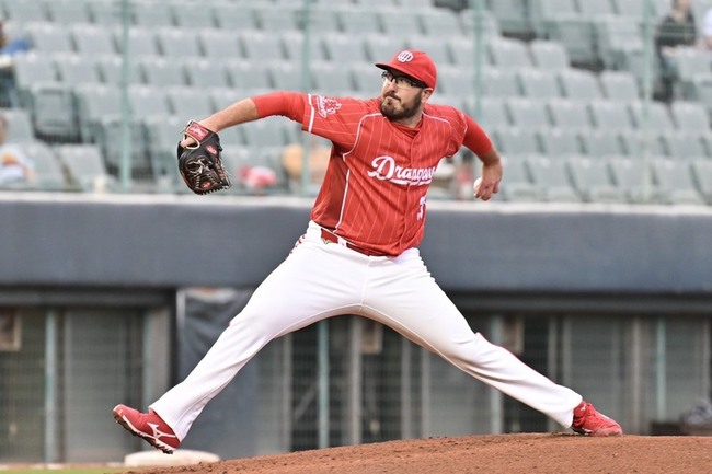 龍隊昨天官辦熱身賽首戰以7比8不敵統一7-ELEVEn獅隊,今天在斗六棒球場與樂天桃猿交手,龍隊派出新洋投龍聖(Zac Lowther)先發,龍聖首局讓桃猿打者3上3下,2、3局雖都有被敲出安打、但沒有失分。