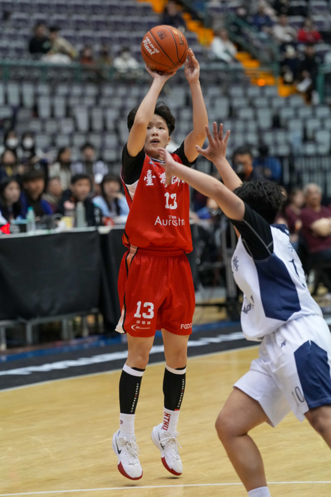 台師大碩二射手林佳蓉昨天因球隊無緣爭冠,賽後淚灑記者會,矢言要打好本季最後一場球,她付諸行動,首節獨攬10分,率隊取得24比11領先。