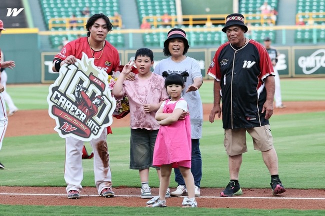 雖然陳子豪的家人住台東,不過那天在澄清湖比賽剛好家人有到現場,陳子豪說:「我有跟他們說沒辦法保證會達成,算是第一次在場上跟他們一起合照,滿開心的。」