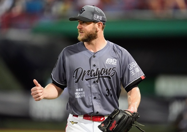 味全龍隊今天在主場天母棒球場迎戰兄弟隊,派出洋投鋼龍(Drew Gagnon)先發,鋼龍1局上就被首名打者岳政華敲出安打,但接著連投2次三振、再讓打者敲出右外野方向飛球出局,沒有失分。