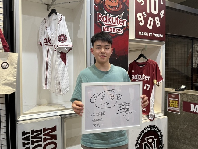 (中央社記者謝靜雯桃園8日電)桌球好手「柚子同學」高承睿進場看中職賽事,樂天桃猿特別準備林泓育手繪吉祥物並寫下「相信自己努力」禮物,先前打世錦賽收到桃猿球員影片,高承睿說有被鼓勵支持的感覺。