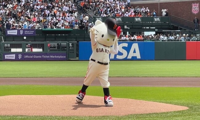 美職大聯盟MLB巨人隊今天在主場迎戰勇士隊,終場以4比3獲勝。比賽外,更讓現場氣氛沸騰的是球隊舉辦的Hello Kitty主題日活動,大批球迷在開賽前4小時即在甲骨文球場(Oracle Park)外大排長龍,等候領取1萬5000件長榮航空和巨人隊聯名球衣。