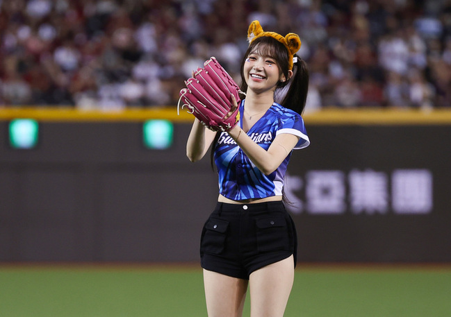 因「三振舞」爆紅的李珠珢今天再度重現經典舞姿,另外還在賽前開球、由悍將球員李東洺擔任開球捕手。在5局中場,李珠珢更是驚喜唱跳中文歌曲「青春修煉手冊」,引起觀眾歡呼。