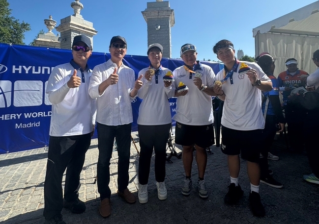 由多次代表台灣征戰亞運賽場的黃逸柔領軍,搭配陳怡瑄、邱鈺兒組成的台灣複合弓女子團體,在這次射箭世界盃馬德里站表現亮眼,不僅在團體賽4強扳倒射箭強權韓國隊,今天更於金牌戰穩定發揮,終場以227比225逆轉印度隊,勇奪台灣射箭代表隊本季在世界盃首金。