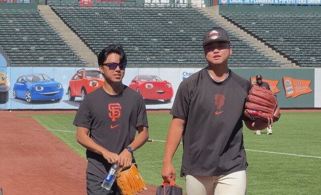 他今天現身巨人主場甲骨文球場(Oracle Park),賽前在球場熱身練習。