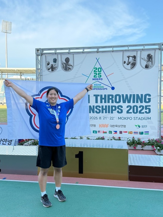 (中央社記者黎建忠台北21日電)台灣女子鉛球小將江靜緣,今天在韓國舉行的2025亞洲投擲錦標賽,以第3次試擲的17公尺09拿下銅牌。教練呂景義表示,雖然拿到獎牌,但成績應該可以更好,未來會持續努力。
