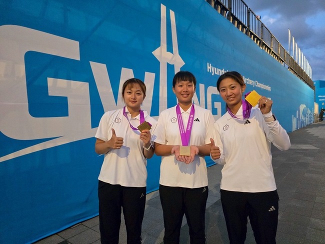 由巴黎奧運國手邱意晴領軍,搭配許芯慈、李采璇組成的反曲弓女團,這次在韓國光州舉行的射箭世錦賽展現強大抗壓力,並在今天金牌戰以6比0完封日本,如願摘下隊史睽違6年的金牌,展現接班氣勢。