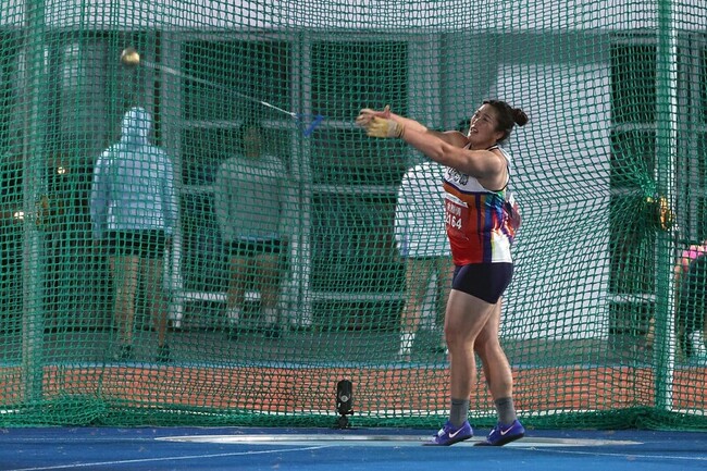 身為鏈球全國紀錄保持人的余雅倩,已經橫掃國內各大賽事的女子鏈球項目,這次以衛冕者身分挑戰全國運動會,沒想到余雅倩在動作沒有做好情況下,第1擲就不慎扭傷腳踝,導致差點與金牌擦肩而過,所幸最後1擲她奮力繳出61公尺39成績,驚險捍衛女子鏈球3連霸。