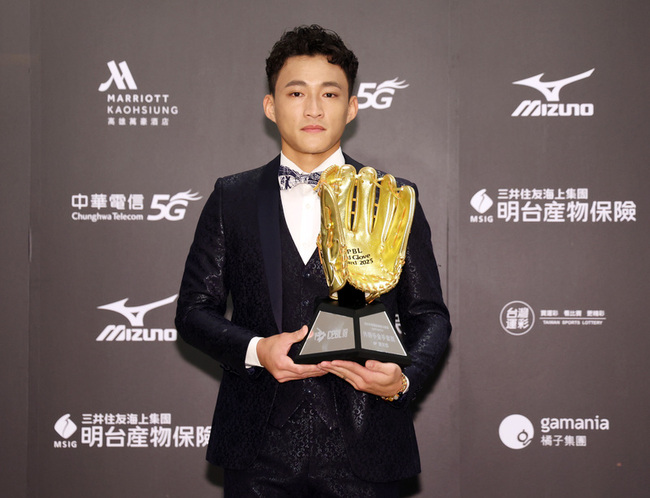 (中央社記者謝靜雯高雄5日電)中職味全龍隊外野手郭天信4度拿下外野金手套獎,今天帶著兒子一同出席頒獎典禮;郭天信自評守備心態進步,今年外野346次守備機會寫紀錄,也希望可以再突破。