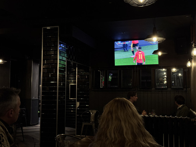 本場比賽比利時一共踢進7球,而每次得分時,酒吧內就會傳出歡呼聲。