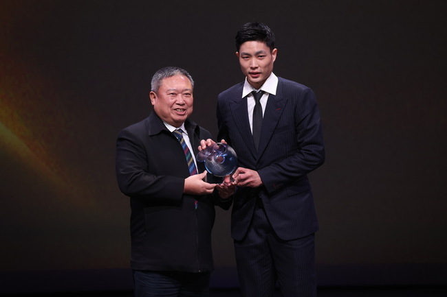周天成今天有點忙碌,先是擔任最佳男運動員傑出獎的頒獎人,隨後又從中華奧會主席林鴻道手中接過114年體育運動精英獎最佳運動精神獎的獎座。