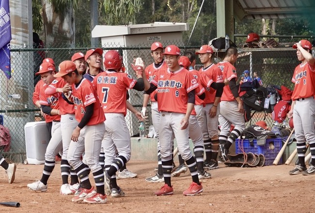 台東體中前5局沒有拿下分數,6局上打線突破,靠著保送、盜壘、壯金銘二壘打、滾地球攻勢串連,加上對手守備失誤,一口氣跑回2分、扳平戰局。