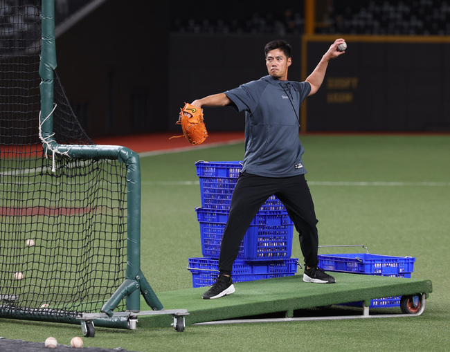 (中央社記者蘇志畬台北27日電)前旅美左投陳偉殷今天拿起熟悉的白球面對打者,為備戰經典賽的台灣隊擔任餵球投手,陳偉殷表明隨時可以丟,但也笑說僅限打擊練習,「比賽的話可能還需要一點時間。」