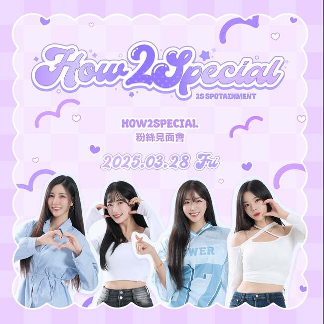 2S SPOTAINMENT 表示,為了回應台灣粉絲的熱情支持,特別策劃了「HOW 2 SPECIAL」粉絲見面會,讓4位啦啦隊女神與粉絲有近距離交流的機會。去年世界棒球12強賽期間,許多台灣粉絲在場內外為她們舉辦應援活動讓女神們感動不已。因此,這場粉絲見面會的誕生,將成為 2S 成員們回饋粉絲的重要時刻。
