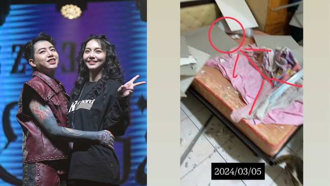 接著陳緗妮也分享當時的照片,可以看到照片上標記的時間是2024年3月5日,床上掉落數片天花板以及灰塵碎屑。陳緗妮說,原本覺得算了,修繕費出得起,但房東要求同時要支付他全額房租,修繕期間另租新住處還要自行負擔,越想越荒謬,是不是哪裡怪怪的。同時也提到「403大地震後另一間房間塌陷是我從小住的房間,幸好我沒有選擇回娘家坐月子。」