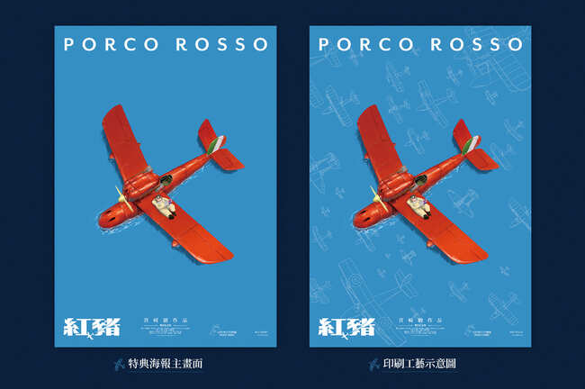 宮﨑駿經典鉅作《紅豬》被譽為吉卜力工作室「最熱血神作」,即將於9月4日在台磅礡上映。在吉卜力迷熱烈敲碗下,繼上半年《風之谷》掀起現象級「王蟲熱潮」之後,片商甲上娛樂今隆重公開金獎設計師方序中與知名藝術家董十行再度聯手為《紅豬》打造台灣限定海報,視覺以湛藍海面作為襯底,動畫中最經典的象徵——「紅豬」波魯克與他的紅色戰鬥機停泊其上,透過局部打凸的印刷工藝營造立體感十足的飛行艇輪廓,而看似波光粼粼的海面,隨著光線與視角的變化,驚喜發現竟是一架架局部上光不上色的飛機群,翱翔於上空相伴左右,細膩且多層次的視覺彩蛋層出不窮,完美復刻《紅豬》作品中所傳達「翱翔的浪漫」精神,全球限量僅5萬份的A2尺寸首週重磅特典,收藏價值絕對爆表。